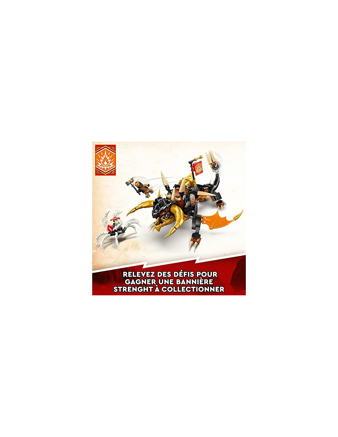 • Les enfants peuvent jouer des batailles passionnantes avec cette figurine articulée LEGO NINJAGO Cole's Earth Dragon, qui peut être améliorée pendant l'action