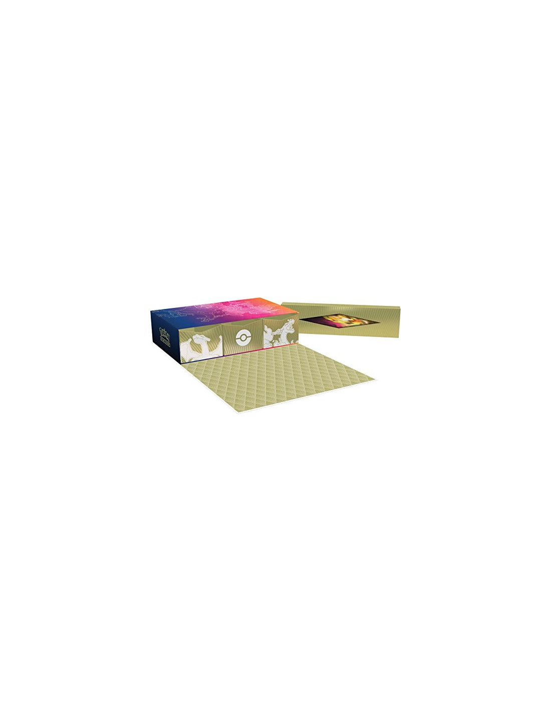 Fêtez la série Épée et Bouclier et l’ère des Pokémon-V, Pokémon-VMAX et Pokémon-VSTAR avec une tête brûlée qui sait utiliser toute sa force à bon escient. Dracaufeu fait monter la température avec un trio de cartes promo texturées brillantes, et vous retrouvez le style enflammé de sa forme Gigamax sur un tapis de jeu, une pièce en métal et un ensemble de protège-cartes. Des dés et des marqueurs d’États Spéciaux en métal viennent compléter ce set ultime d’accessoires de jeu. Grâce à un livret bien illustré rempli de statistiques, revivez vos aventures de la série Épée et Bouclier en ouvrant les nombreux boosters de cette collection. Contient : 3 cartes promo texturées brillantes : Dracaufeu-V, Dracaufeu-VMAX et Dracaufeu-VSTAR, 1 tapis de jeu représentant Dracaufeu Gigamax, 65 protège-cartes au motif de Dracaufeu Gigamax, 1 pièce métallisée de Dracaufeu Gigamax, 6 dés marqueurs de dégâts en métal, 2 marqueurs d’États Spéciaux en métal, 1 marqueur VSTAR en acrylique, 16 boosters de la série Épée et Bouclier du JCC Pokémon, 1 guide de jeu de la série Épée et Bouclier, 1 carte à code pour le JCC Pokémon Live.