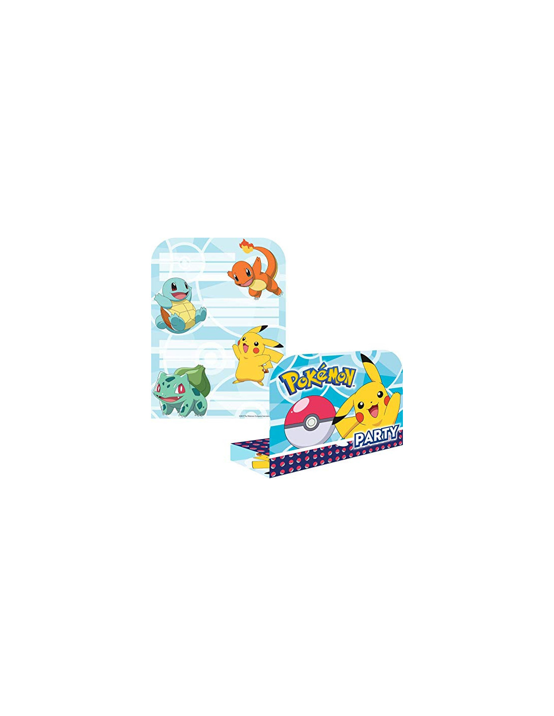 Lot de 8 cartes d'invitation avec enveloppes sur le thème des Pokémons.