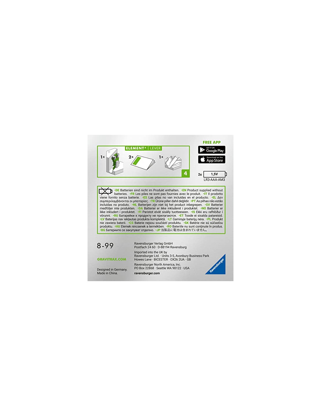 COFFRET ELECTRONIQUE : Construisez des circuits GraviTrax encore plus spectaculaires avec la version électronique POWER ! Cet élément Elevator permet de remonter les billes, comme un escalier. Il fonctionne électroniquement, se remet seul en position et communique avec les autres éléments en s'envoyant des signaux pour créer un mouvement continu...