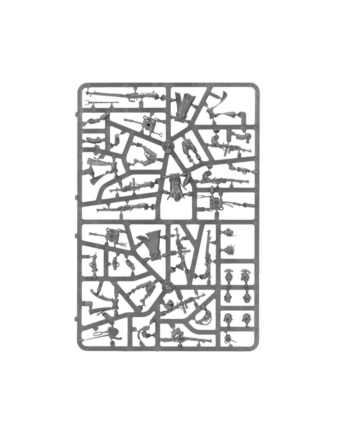 L'unité peut inclure un Alpha, muni d'un pistolet à radium ou d'un électropistolet et d'une arme de corps à corps (épée énergétique, matraque taser ou électromasse) et trois figurines peuvent avoir des armes spéciales. Vous avez accès à une arquebuse transuranique, à un électrofusil et à un tromblon à plasma, ce dernier étant fourni avec une tête et un paquetage spécifique. Une des figurines peut devenir l'Alpha, doté d'un datacâble amélioré ou d'un omnispex; la boîte dépeint véritablement l'obsession de l'Adeptus Mechanicus pour la collecte de données.