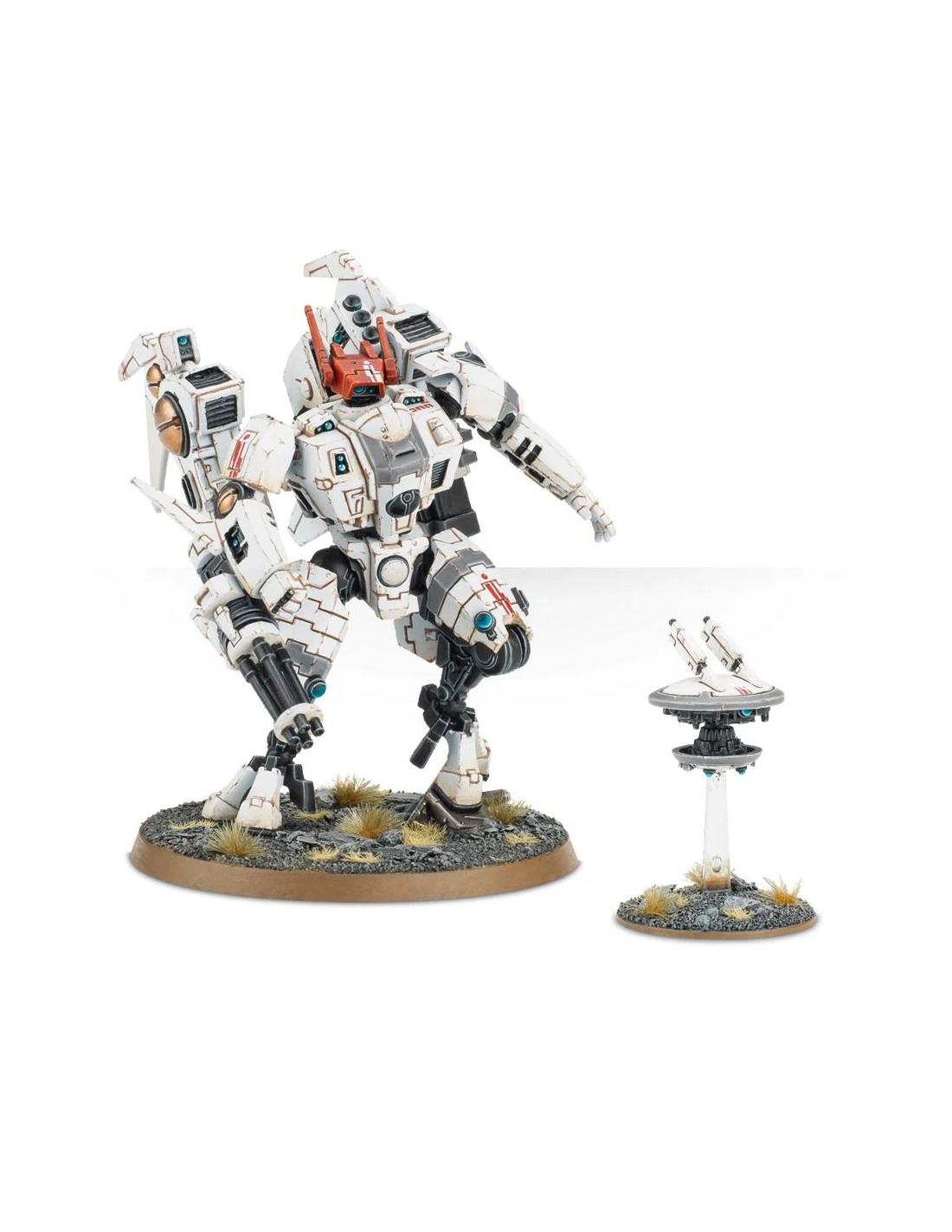 Ce kit plastique vous fournit tout le nécessaire pour assembler un T'au Commander, soit en XV-85 Enforcer Armour Crisis Battlesuit, soit en XV86 Coldstar Battlesuit. Il y a dans la boîte une quantité immense d'options - différents moteurs, membres et têtes - plus une tonne d'armes! Lanceur de charges à dispersion, fusil à plasma froid, lance-flammes, éclateur à fusion, cyclo-éclateur à ions, canon à induction (plus son kit d'amélioration) et nacelle de missiles. Inclut un drone, qu'on peut monter en tant que Gun Drone, Shield Drone ou Marker Drone.