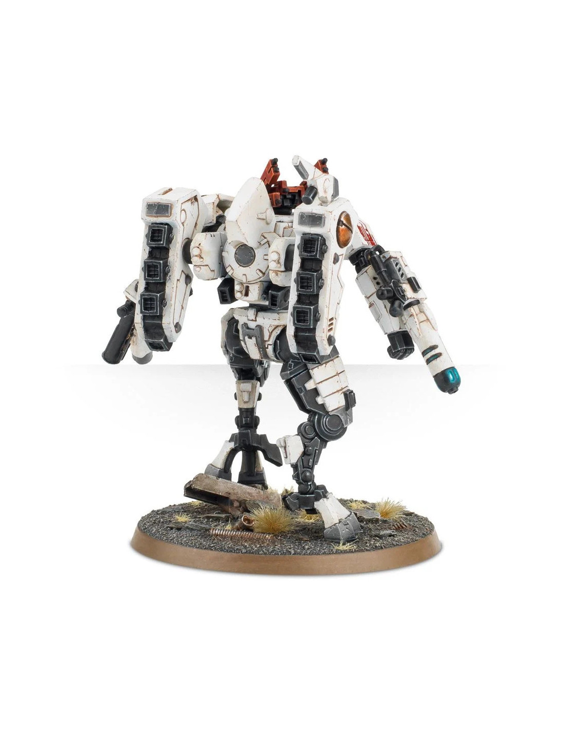 Rapides et mortels, les commandants T'au pilotent des armures d'une taille et d'une puissance écrasantes. Il va sans dire qu'un simple soldat pilotant de telles armures ne suffit pas pour acquérir les qualités d'un Commandant : c'est avant tout le sens stratégique et la capacité d'adaptation à des situations imprévisibles qui distinguent ce pilote des autres. . Il faut des années et des années de service exemplaire pour atteindre ce rang prestigieux; tous les commandants Tau ont gagné leur statut à la dure. Leurs combinaisons de combat Enforcer Armor Crisis XV-85 sont équipées d'un arsenal extrêmement destructeur : des lance-flammes, des explosifs à cycle ionique et des lanceurs à charge explosive font partie des chargements optionnels, soutenus par des suites de contre-mesures électroniques et de solides capacités de traitement des données.